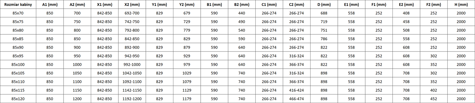 Dimensioni: 85x70 cm (porta destra 85 cm, porta sinistra 70 cm)