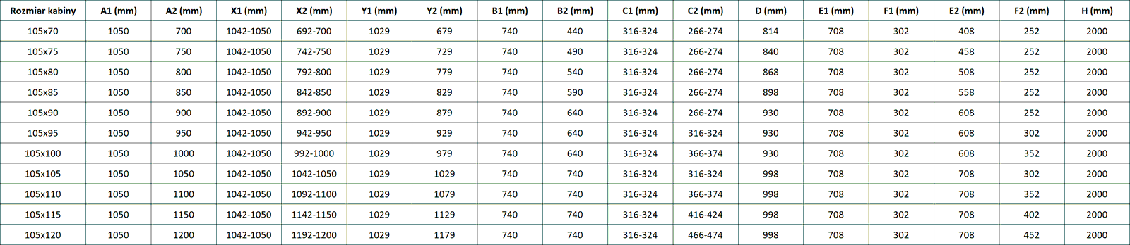 Dimensione: 105x90 cm (porta destra 105 cm, porta sinistra 90 cm)