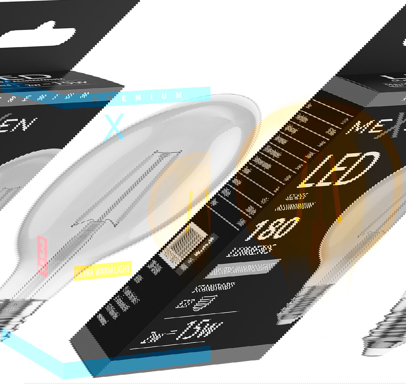 Mexen Vintis Lampadina a filamento LED E27, G80, 2W, Calda - 2200K, 180 lm, ambra - L155-E27-0222-50