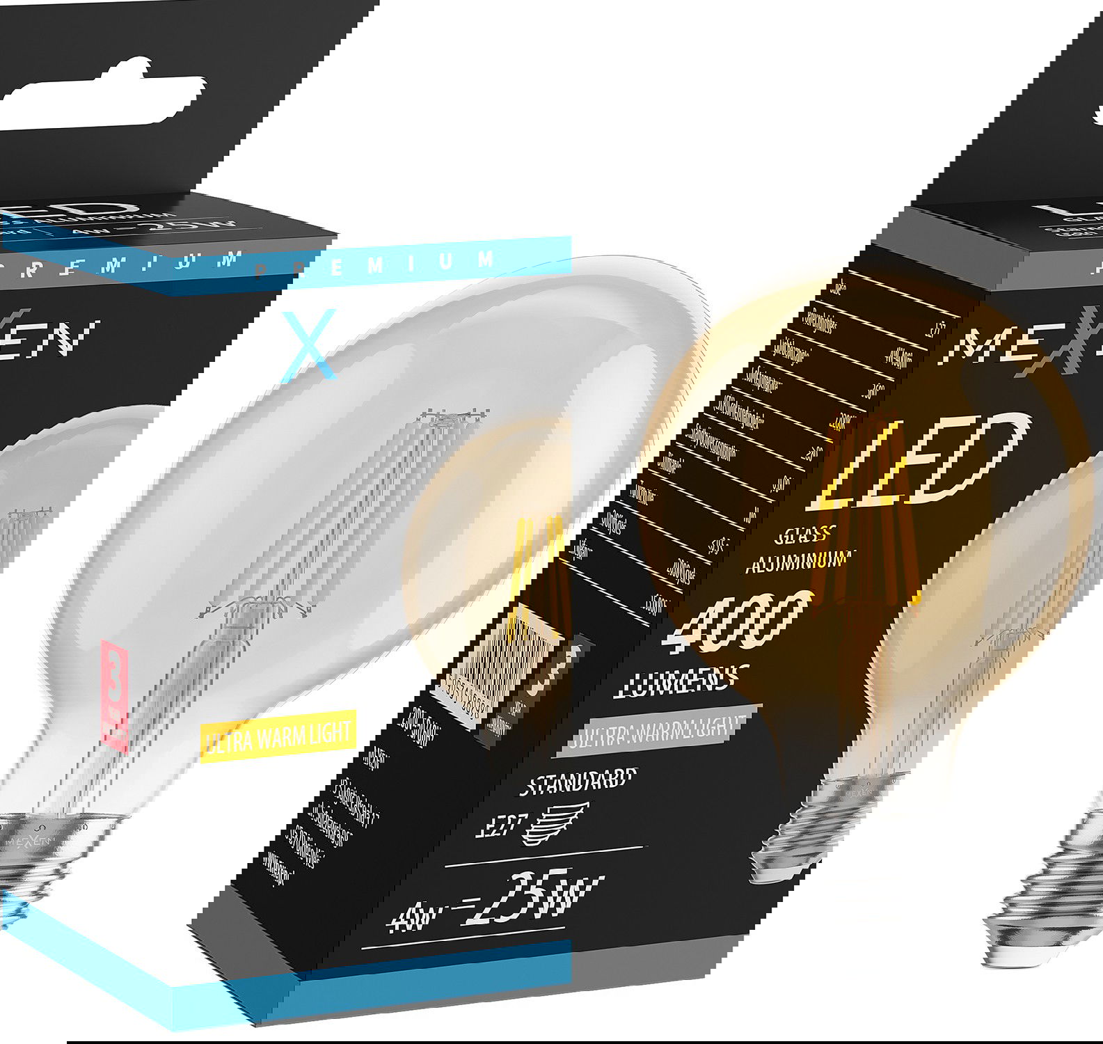 Mexen Vintis Lampadina LED a filamento E27, G80, 4W, Calda - 2700K, 400 lm, ambra - L155-E27-0427-50
