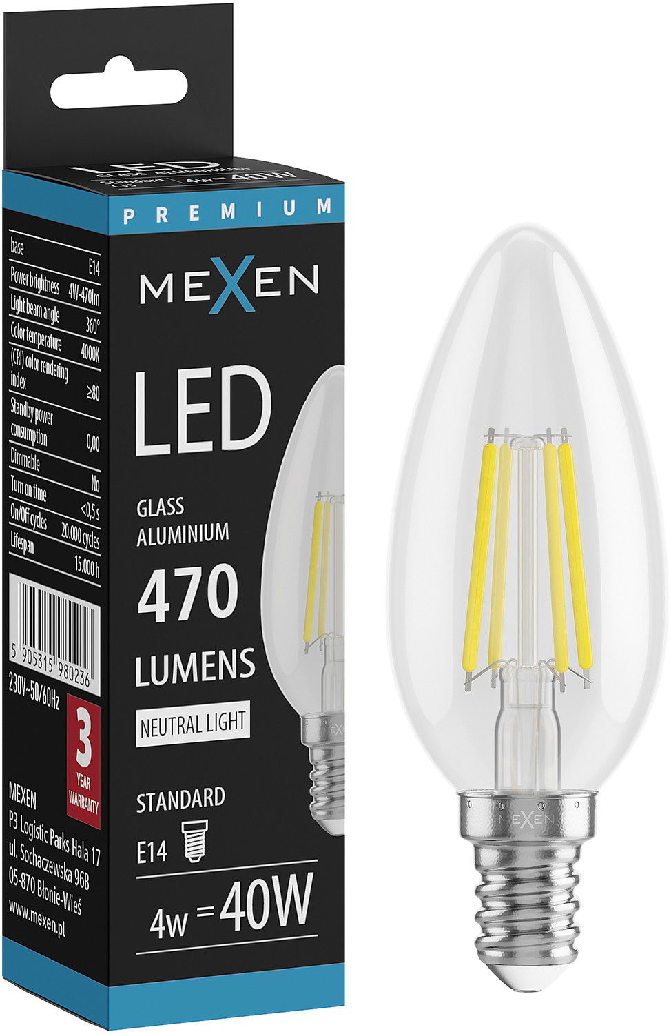 Mexen Vintis Lampadina a filamento LED E14, C35, 4W, Neutro - 4000K, 470 lm, chiaro - L154-E14-0427-00 - L154-E14-0440-00