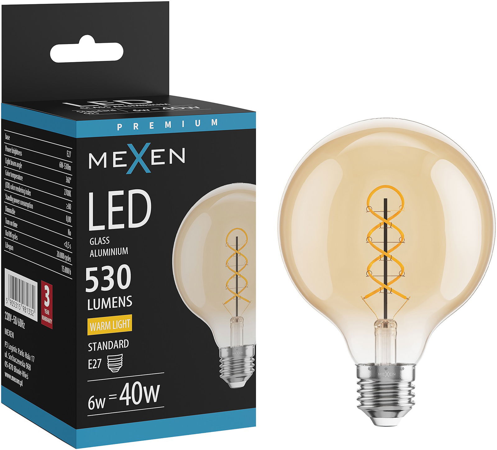 Mexen Vintis Lampadina LED a spirale a filamento E27, G95, 6W, Calda - 2700K, 530 lm, ambra - L167-E27-0627-50