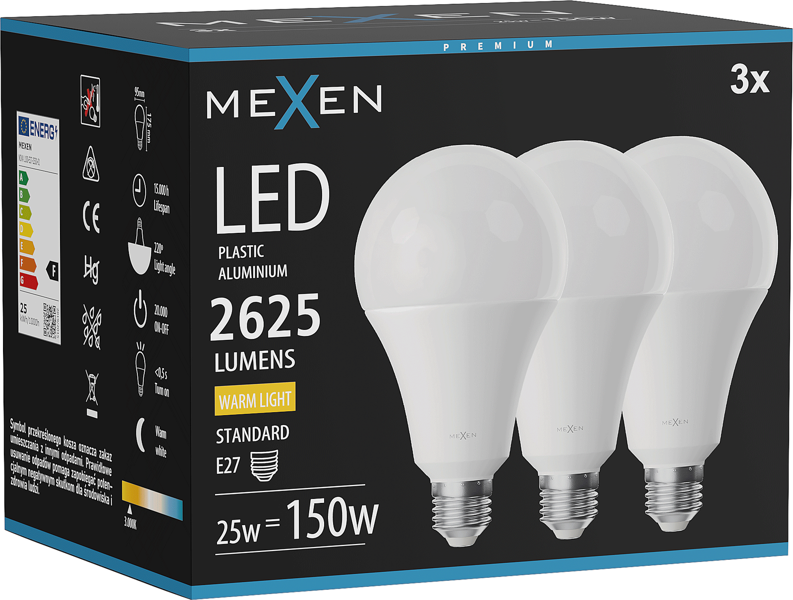 Mexen Nova 3x Lampadina LED E27, A95, 25W, Calda - 3000K, 2625 lm - L100-E27-2530-01x03