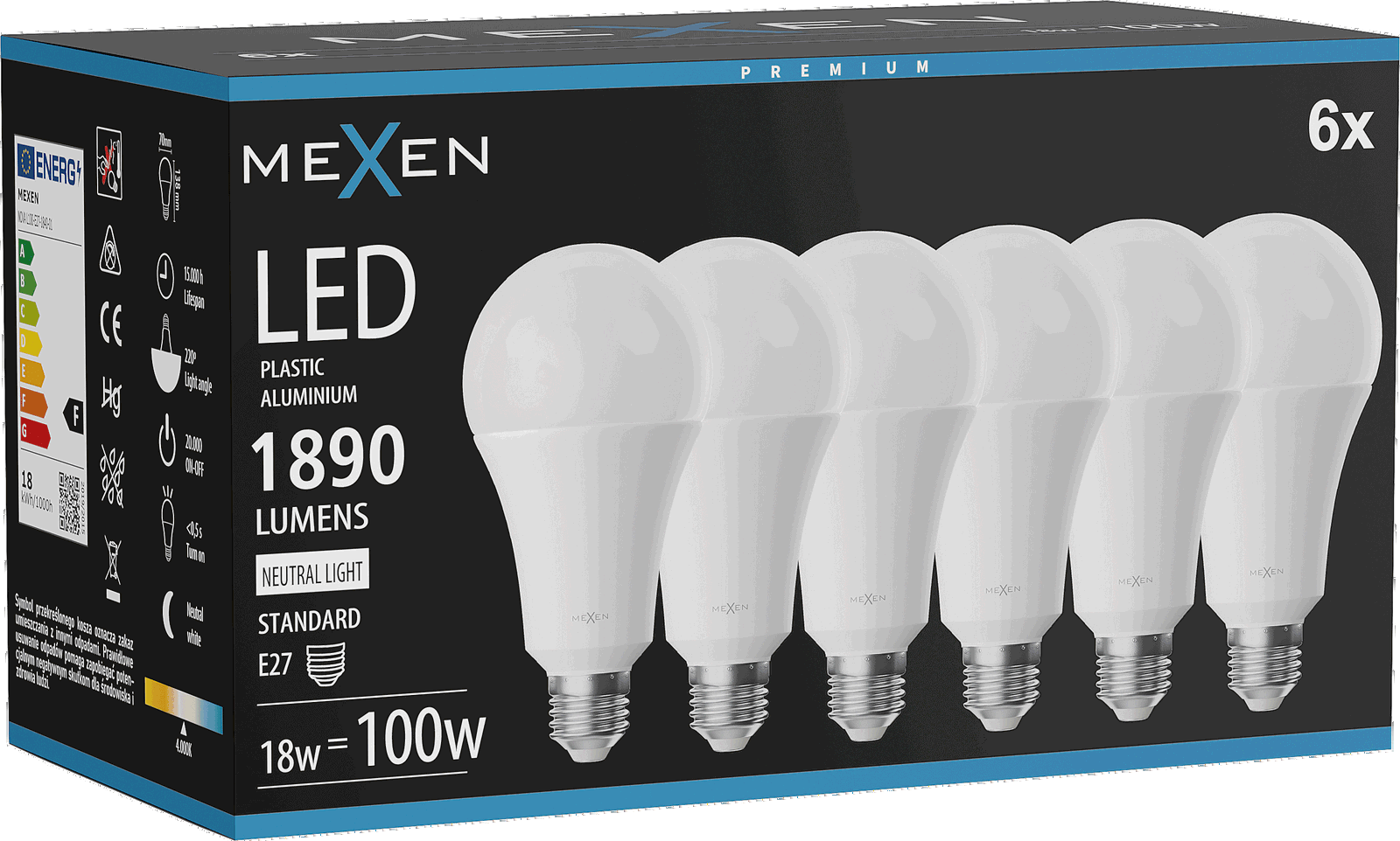 Mexen Nova 6x Lampadina LED E27, A70, 18W, Neutro - 4000K, 1890 lm - L100-E27-1840-01x06