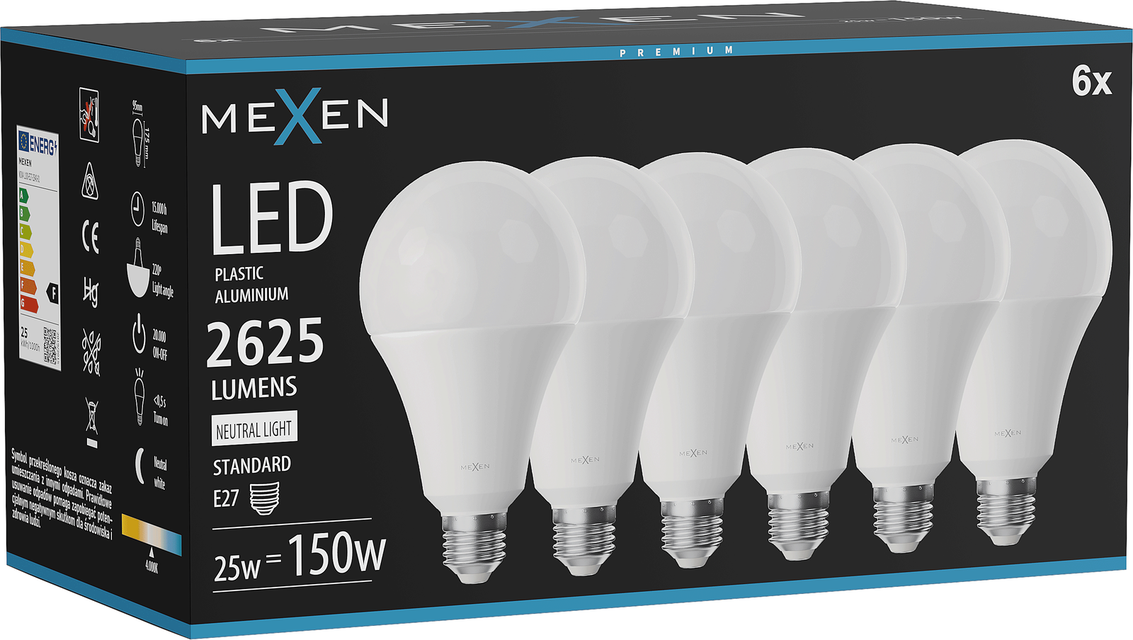 Mexen Nova 6x Lampadina LED E27, A95, 25W, Neutra - 4000K, 2625 lm - L100-E27-2540-01x06