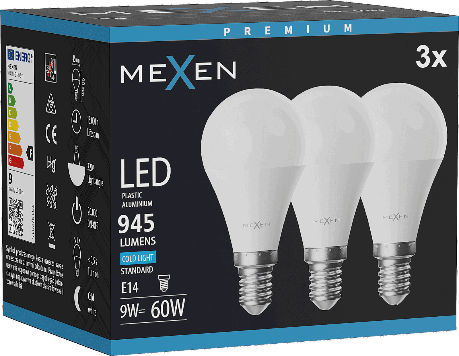 Mexen Nova 3x Lampadina LED E14, G45, 9W, Fredda - 6500K, 945 lm - L101-E14-0965-01x03