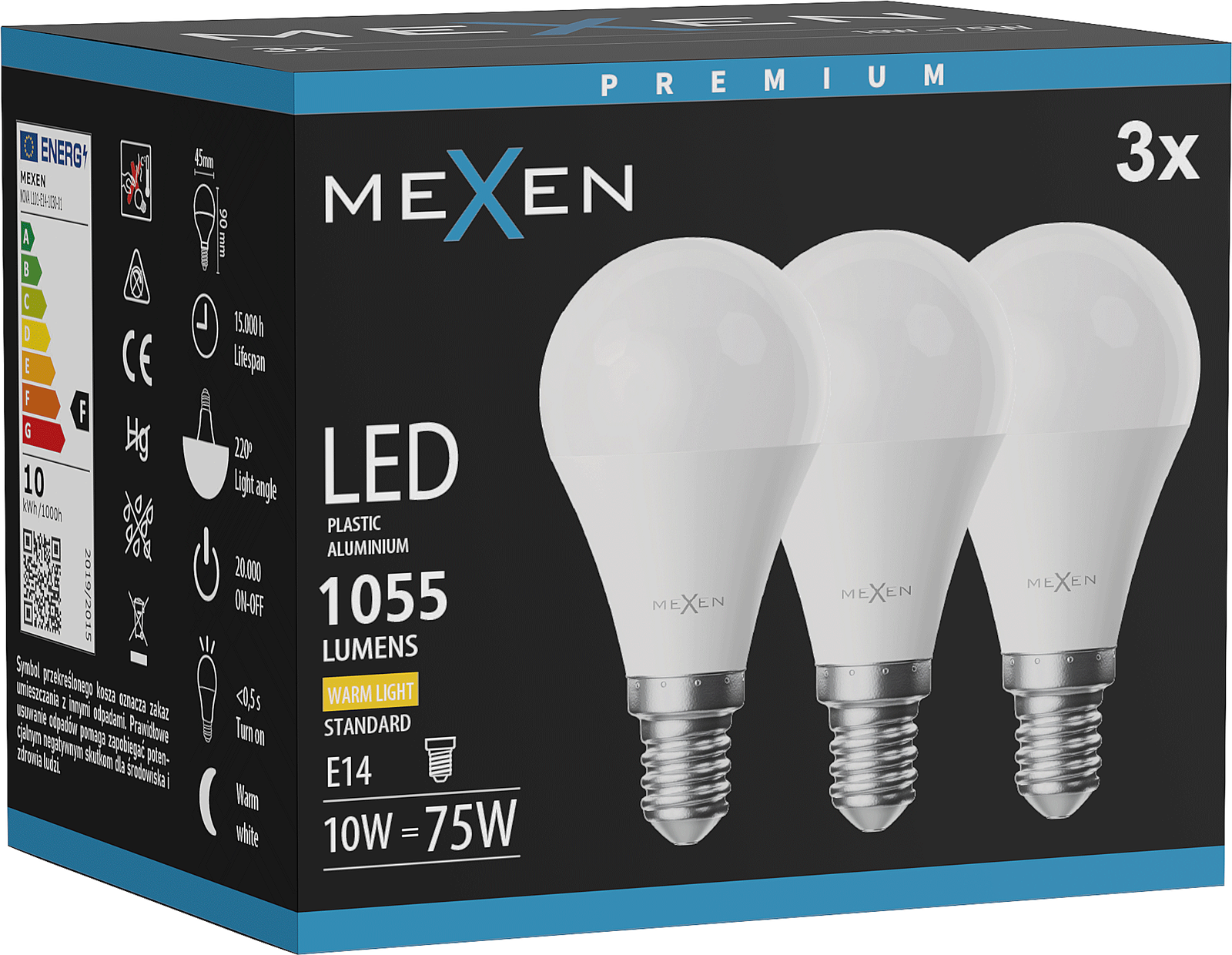 Mexen Nova 3x Lampadina LED E14, G45, 10W, Calda - 3000K, 1055 lm - L101-E14-1030-01x03