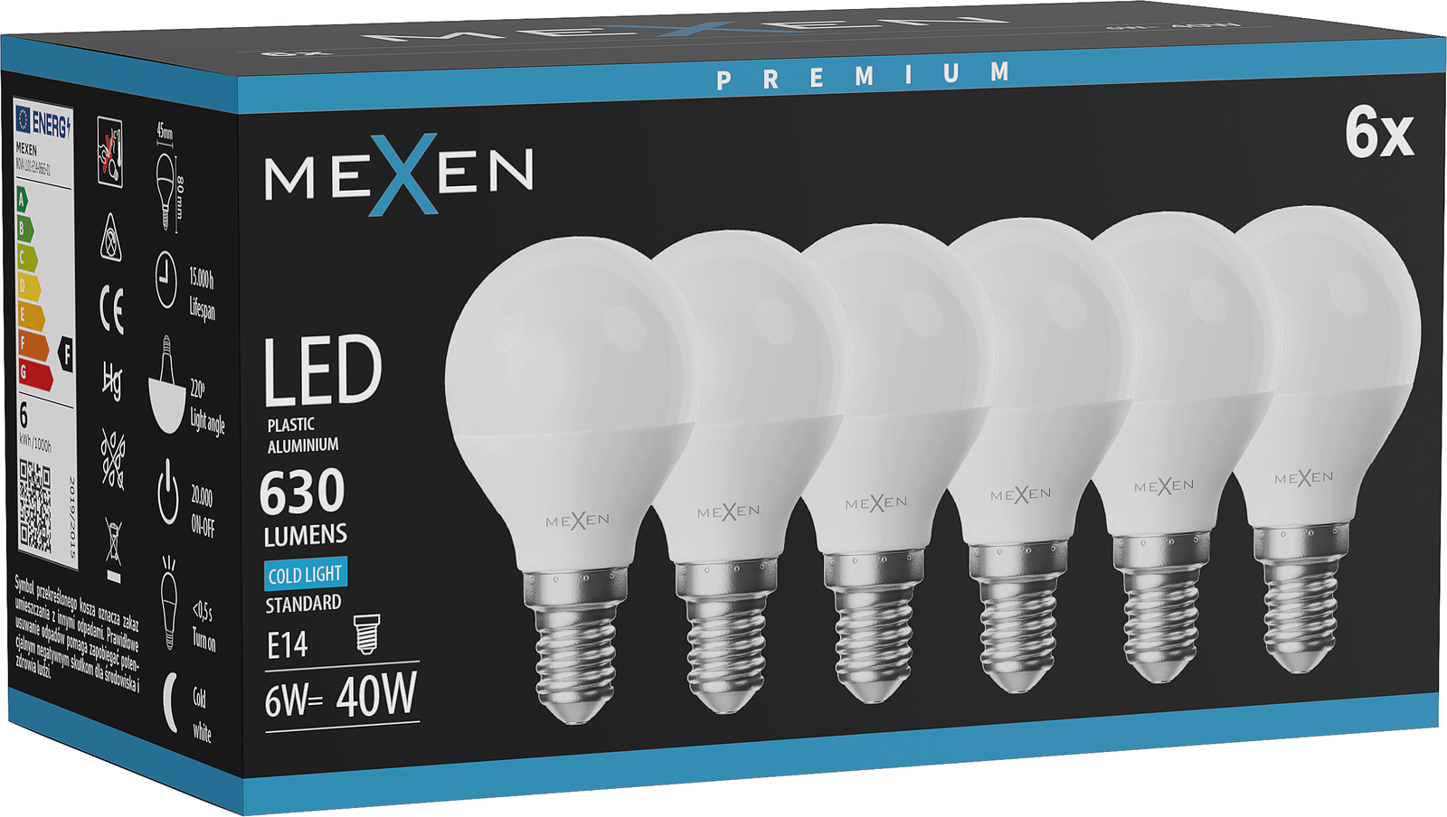 Mexen Nova 6x Lampadina LED E14, G45, 6W, Fredda - 6500K, 630 lm - L101-E14-0665-01x06