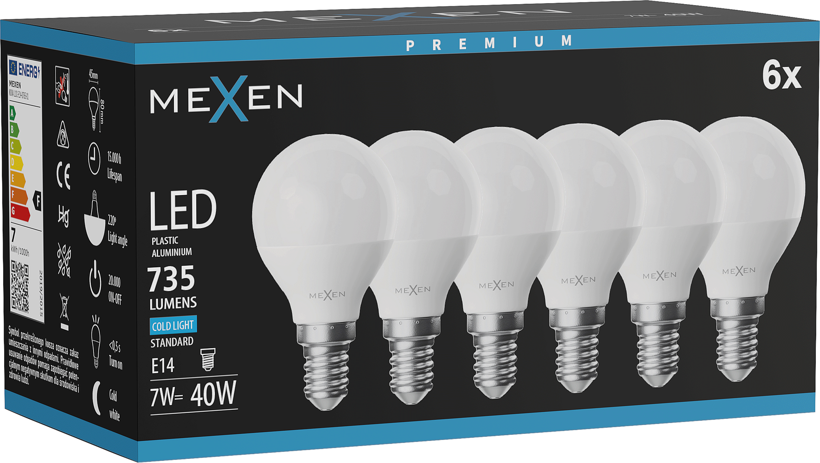Mexen Nova 6x Lampadina LED E14, G45, 7W, Fredda - 6500K, 735 lm - L101-E14-0765-01x06