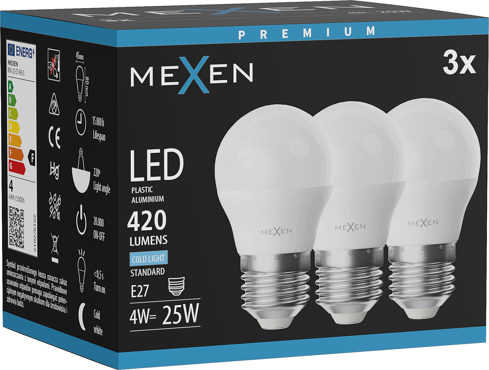 Mexen Nova 3x Lampadina LED E27, G45, 4W, Fredda - 6500K, 420 lm - L101-E27-0465-01x03