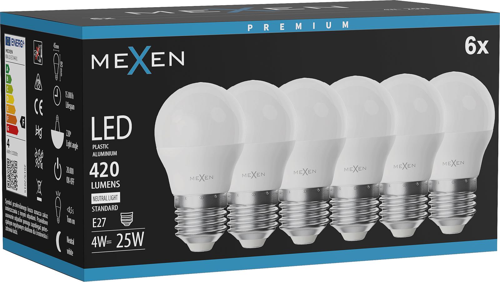 Mexen Nova 6x Lampadina LED E27, G45, 4W, Neutra - 4000K, 420 lm - L101-E27-0440-01x06