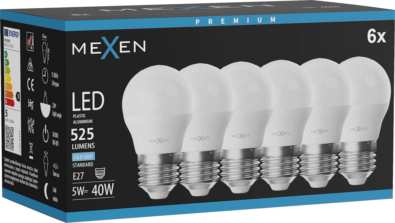 Mexen Nova 6x Lampadina LED E27, G45, 5W, Fredda - 6500K, 525 lm - L101-E27-0565-01x06