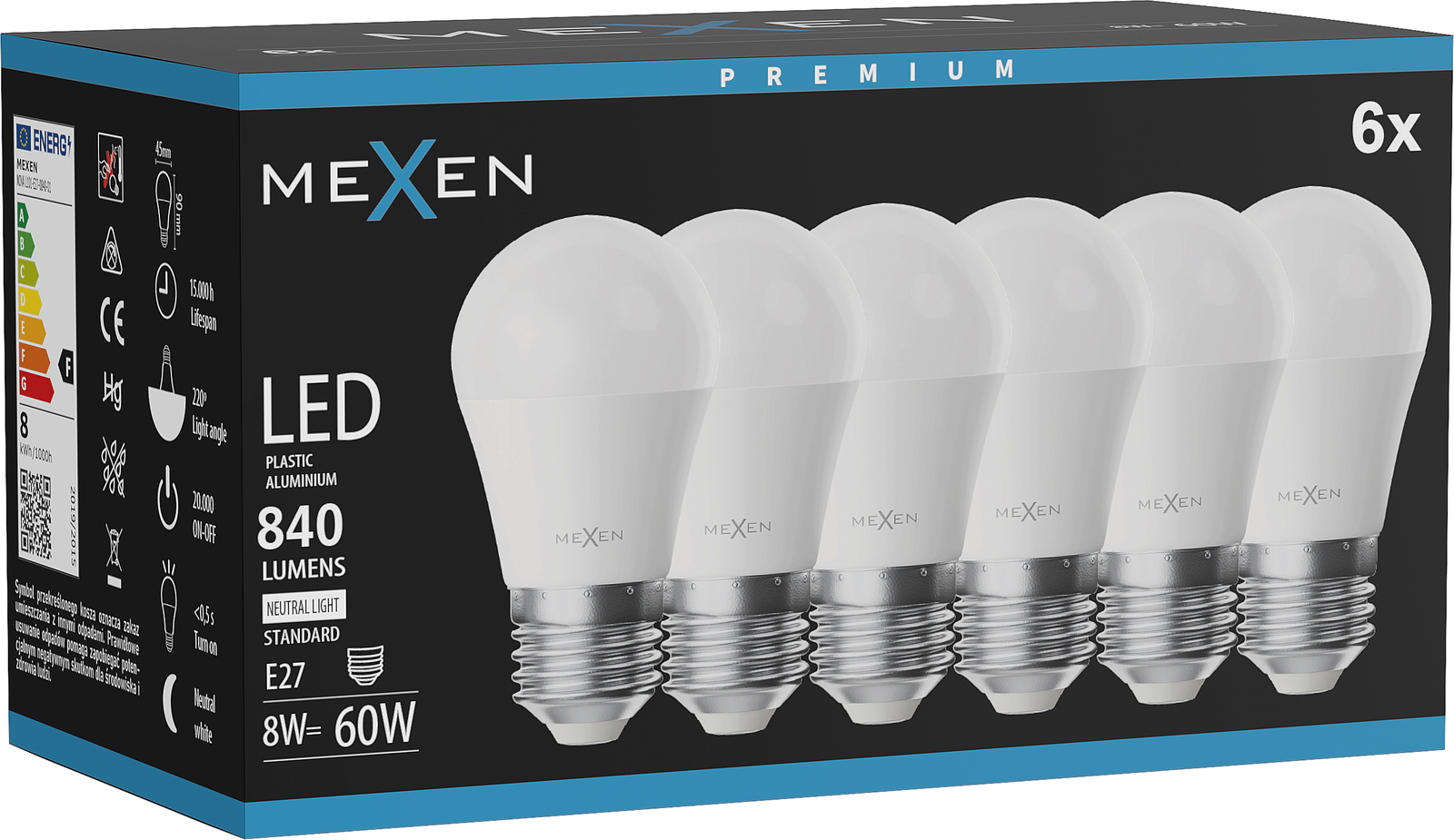 Mexen Nova 6x Lampadina LED E27, G45, 8W, Neutro - 4000K, 840 lm - L101-E27-0840-01x06