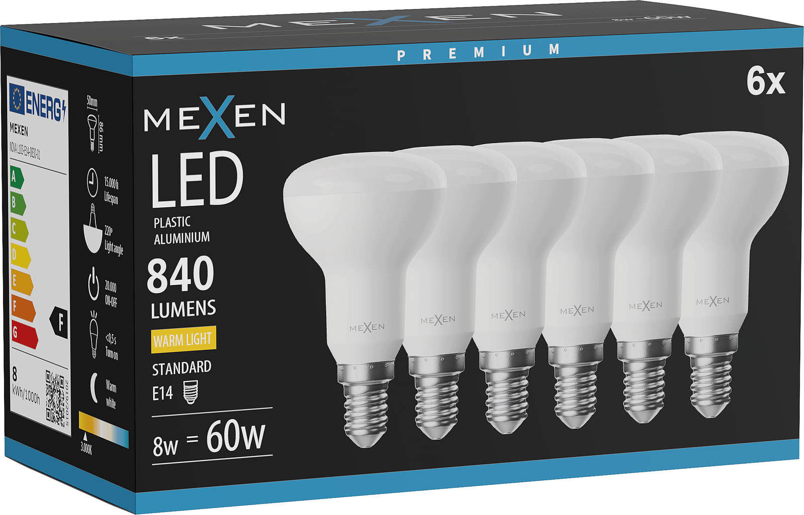 Mexen Nova 6x Lampadina LED E14, R50, 8W, Calda - 3000K, 840 lm - L103-E14-0830-01x06