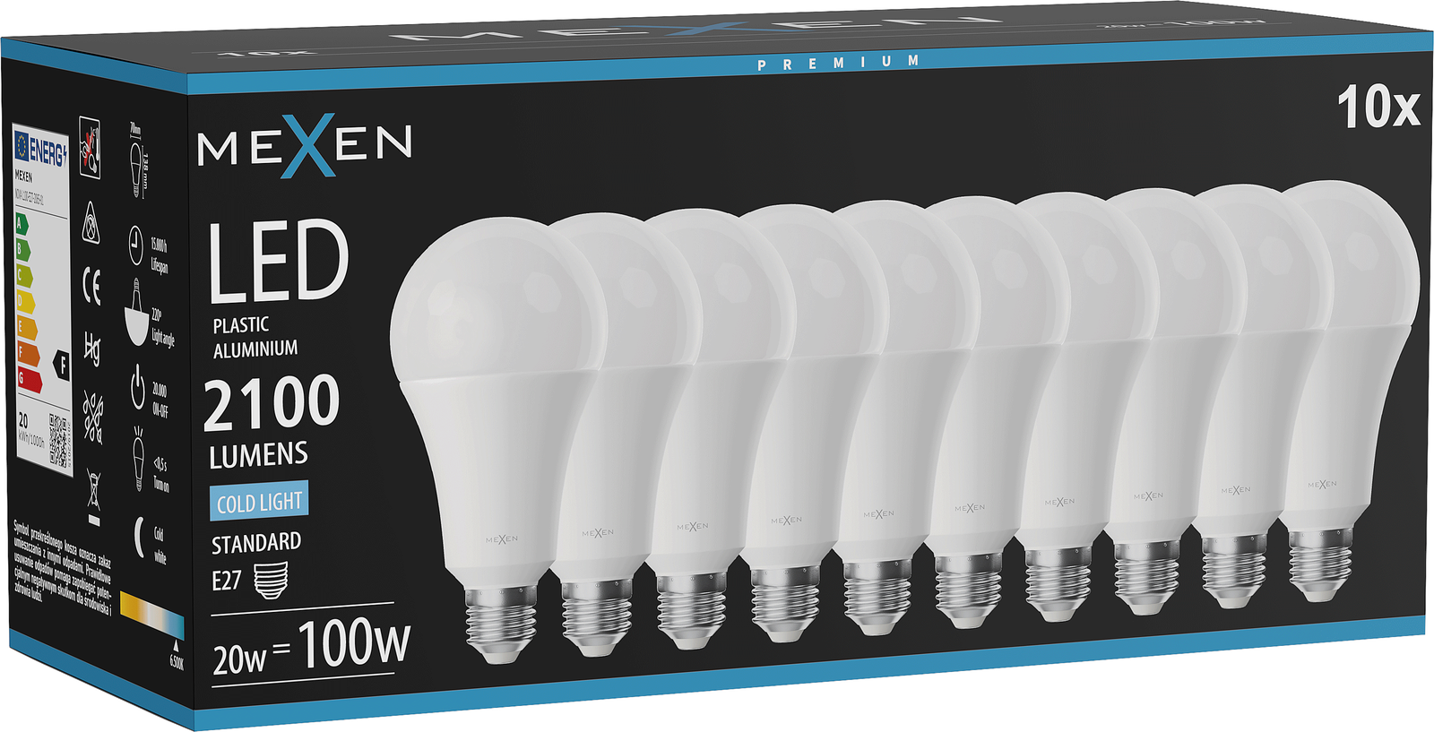 Mexen Nova 10x Lampadina LED E27, A70, 20W, Fredda - 6500K, 2100 lm - L100-E27-2065-01x10