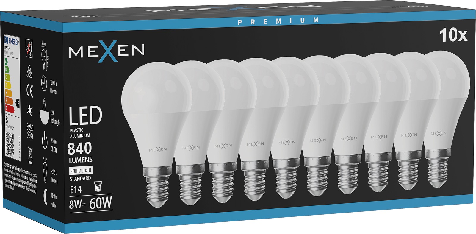 Mexen Nova 10x Lampadina LED E14, G45, 8W, Neutra - 4000K, 840 lm - L101-E14-0840-01x10