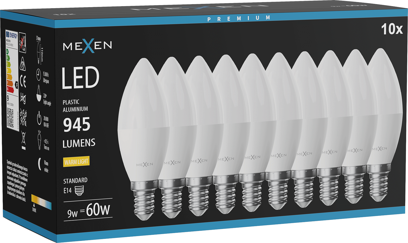 Mexen Nova 10x Lampadina LED E14, C37, 9W, Calda - 3000K, 945 lm - L102-E14-0930-01x10