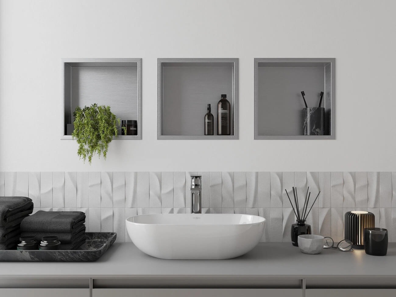 I rubinetti da muro sono meno popolari rispetto a quelli da appoggio, ma trovano comunque applicazione nei bagni moderni. La loro installazione richiede un approccio più avanzato, poiché è necessario determinare con precisione l'altezza del rubinetto e la posizione dei tubi dell'acqua.