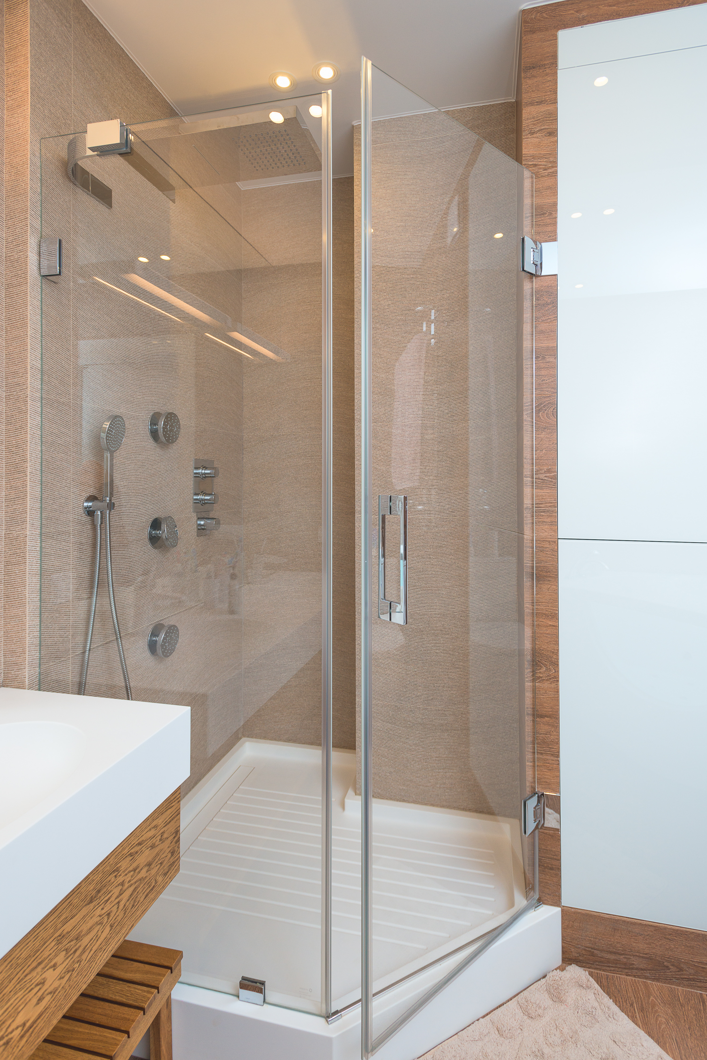 Quando completi il sistema della doccia, assicurati di scegliere, oltre al soffione standard, anche un soffione a pioggia e un set di bocchette laterali. In questo modo, potrai creare nel tuo bagno un angolo ideale per la rilassazione e il relax per tutti i membri della tua famiglia, un luogo dove riposare dalle tensioni quotidiane e ricaricare le energie per il giorno successivo.