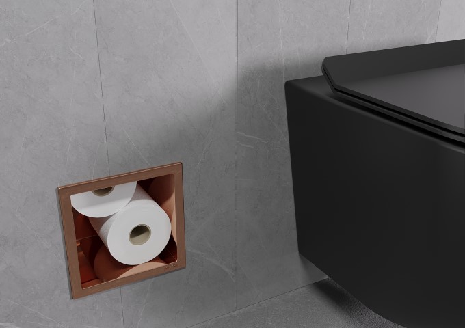 Bisogna ammettere che il portarotolo di carta igienica in colore oro rosa è una proposta piuttosto insolita! Quindi, in quale ambiente si inserirà questo tipo di modello? Puoi tranquillamente abbinare l'oro rosa ai colori più semplici, come il nero, il bianco o il grigio. In loro presenza, si distinguerà e attirerà l'attenzione. Per quanto riguarda i modelli, questo colore può creare una composizione interessante con piastrelle che rappresentano mosaici o che imitano il marmo. Questo abbinamento attirerà l'attenzione di chiunque! Per far sì che l'interno si presenti al meglio possibile, punta anche su altri elementi in questo colore particolare. Possono essere un sistema doccia, un rubinetto per lavabo o uno specchio, ma anche piccoli e semplici accessori, come un dispenser per sapone, un bicchiere per spazzolini da denti, candele o asciugamani. Tuttavia, non esagerare con la quantità di elementi in oro rosa, poiché questo colore è piuttosto intenso e potrebbe sovrastare l'ambiente. Nella giusta quantità, ti permetterà di creare un bagno unico e inimitabile che piacerà a chiunque!